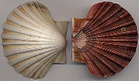 Pecten jacobeus più nota come cappasanta ha conchiglie disuguali e orecchie identiche. Lungo tutto il profilo della conchiglia si estendono numerosi tentacoli in mezzo ai quali si trovano gli occhi. |