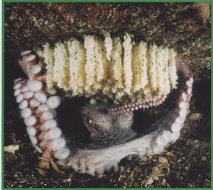 In questo mollusco la conchiglia è completamente scomparsa. Si muove espellendo acqua dagli imbuti e lasciando i tentacoli pendenti: Dotato di otto braccia o tentacoli con ventose disposte su due file a zig-zag. Si costruiscono tane recintate da ciottoli e si nutrono di gasteropodi, pesci e crostacei.