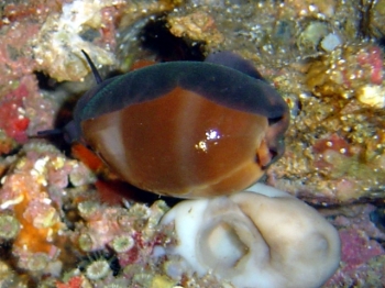 Luria lurida Conchiglia con spire racchiuse, liscia e lucida perchè ricoperta dal mantello. Di colore marrone con due bande e le estremità più chiare. Vive esclusivamente in ambienti rocciosi. |